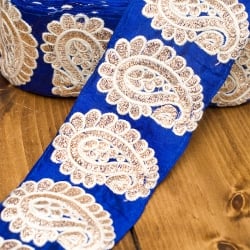 金糸ペイズリー柄チロリアンテープ(メーター売り・幅約8cm) - ブルー
