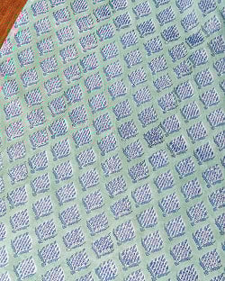 〔1m単位切り売り〕ジャイプル 職人手作り木版染め 色彩美しいボタニカルデザイン〔幅約106cm〕〔ミントグリーン系 小花柄〕 おしゃれ 生地 テーブルクロス 手芸素材などへ