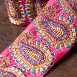 金糸ペイズリー柄チロリアンテープ(メーター売り・幅約10cm) ピンク
