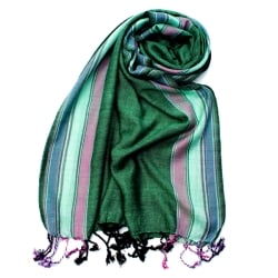 〔170cm×53cm〕ボーダーストール - 翡翠×ピンク×白×紫系