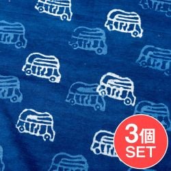 【3個セット】〔1m単位切り売り〕インドの伝統息づく 昔ながらの木版インディゴ藍染布 象さん ネイビー系〔幅約107cm〕