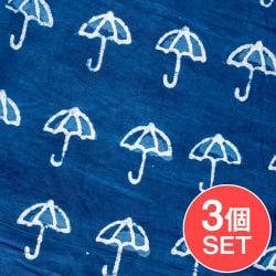 【3個セット】〔1m単位切り売り〕インドの伝統息づく 昔ながらの木版インディゴ藍染布 パラソル ネイビー系〔幅約110cm〕