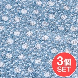 【3個セット】〔1m単位切り売り〕テキスタイルの伝統息づくインドから 昔ながらの更紗模様布 水色系〔幅約106cm〕