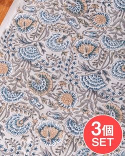 【3個セット】〔1m単位切り売り〕ジャイプル 職人手作り木版染め 色彩美しいボタニカルデザイン〔幅約113cm〕〔薄グレー系 更紗柄〕 おしゃれ 生地 テーブルクロス 手芸素材などへ