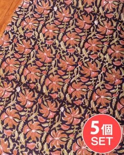 【5個セット】〔1m単位切り売り〕ジャイプル 職人手作り木版染め 色彩美しいボタニカルデザイン〔幅約110cm〕〔ブラック系 更紗柄〕 おしゃれ 生地 テーブルクロス 手芸素材などへ
