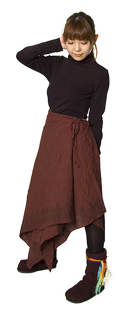 エスニックプリントスカートポンチョ【茶】