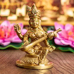 サラスヴァティ坐像 重厚なブラス製 高さ10cm