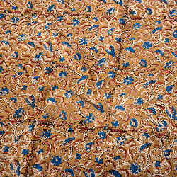 〔1m単位切り売り〕伝統息づく南インドから 昔ながらの木版染め更紗模様布〔約106cm〕 - 黄土色