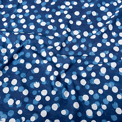 〔1m単位切り売り〕伝統息づく南インドから 昔ながらの木版インディゴ藍染布 - 水玉模様〔幅約111.5cm〕
