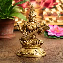 サラスヴァティ坐像 重厚なブラス製 高さ15cm