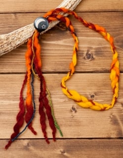 もこもこフェルトのヒッピーヘアバンド - 黄×オレンジ×赤茶系