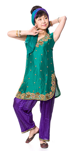 パンジャビ・ドレス3点セット - グリーン