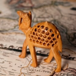 【一木造り】インド職人の手作り透かし彫り木像 ジャリ - ラクダ