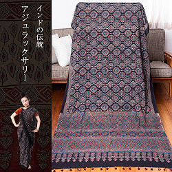 【1点もの】 インドの伝統 アジュラックプリント コットン サリーNo.4