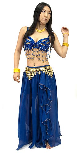 ベリーダンス衣装 スカート・ブラ 上下セット - 青