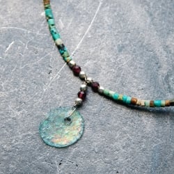 〔一点もの〕ターコイズとローマングラスのペンダント付きネックレス ローマ時代からの贈り物