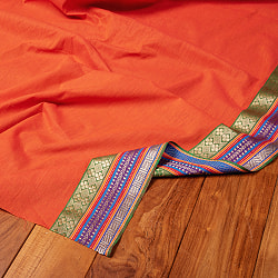 〔1m単位切り売り〕南インドのハーフボーダーコットンクロス〔約106cm〕 - オレンジ