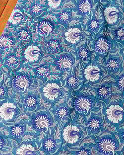 〔1m単位切り売り〕ジャイプル 職人手作り木版染め 色彩美しいボタニカルデザイン〔幅約108cm〕〔青緑系 更紗柄〕 おしゃれ 生地 テーブルクロス 手芸素材などへ