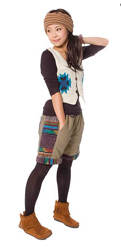 ネパールのフリースハーフパンツ 【グレーベージュ】