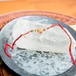 ラーキー - インドの紐ブレスレットレッド×グリーン オームと蓮