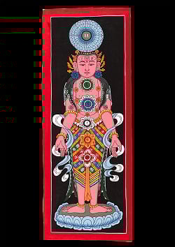 〔一点物〕タンカ - チャクラ人体曼荼羅・エネルギー体図[52cm x 20cm]