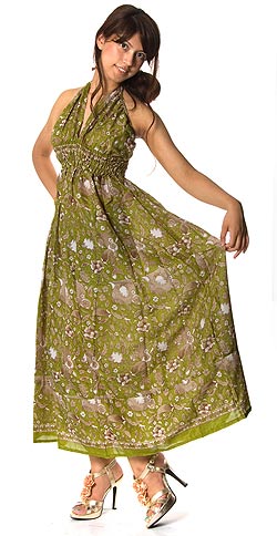 オールドサリーマキシワンピース - 緑・青緑系