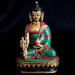 薬師如来(バイーシャジャ・グル) チベタンターコイズ仕上げ 14cm