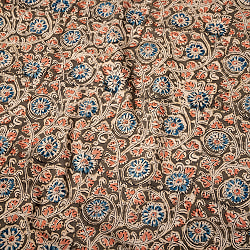 〔1m単位切り売り〕伝統息づく南インドから 昔ながらの木版染め更紗模様布〔約106cm〕 - 黒緑