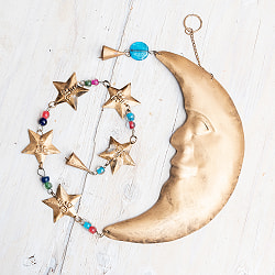 ドアチャイムなどへ!手作りのやさしい音色 インドの銅仕上げベル付きハンギング - 天体チャンドラ〔約100cm〕