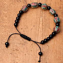 ネパールの数珠ブレスレット - ブラックオニキス