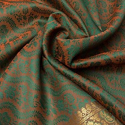 ボーダー入り 光沢スカーフ・デコレーション布 - 緑×オレンジ