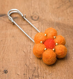 フェルトのお花ブローチ - オレンジ
