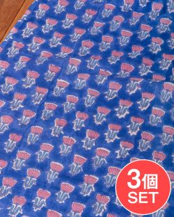 【3個セット】〔1m単位切り売り〕ジャイプル 職人手作り木版染め 色彩美しいボタニカルデザイン〔幅約109cm〕〔レイン系 小花柄〕 おしゃれ 生地 テーブルクロス 手芸素材などへ
