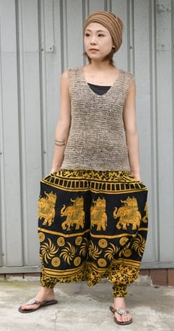 ぞうさんとお花の2WAYモモンガパンツ 【黒×黄】