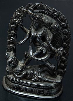 シヴァ神の腹の上で踊るカーリー[18cm]