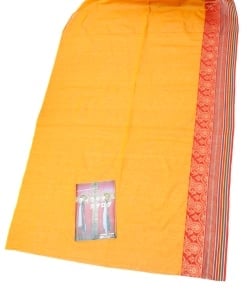 〔1m単位切り売り〕南インドのハーフボーダー・シンプル・コットン生地 - オレンジ×赤ペイズリー〔幅約110cm〕