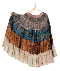 25ヤード アンティークサリーのジプシーパッチワークスカート4段【90cm】