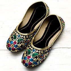 刺繍とスパンコールのフラットシューズ