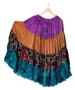 25ヤード アンティークサリーのジプシーパッチワークスカート4段【90cm】
