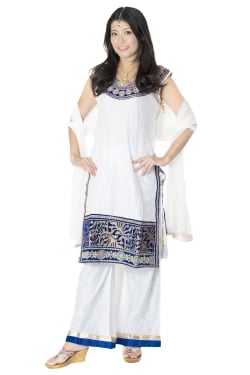 サフェードのパンジャビドレス 3点セット 白×青