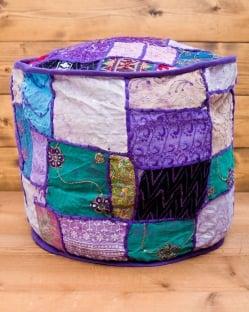 インド・プフ ラジャスタン刺繍布製のパッチワーククッションカバー - 紫