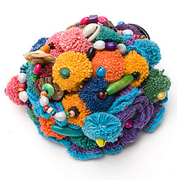 モン族鈴付きぽんぽんヘアクリップ - 水色ステッチ