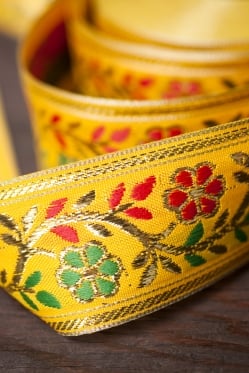 金糸入りチロリアンテープ-25mロール売り(太幅 約4cm× 25m) - 黄色