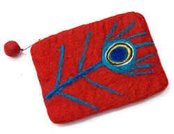 ピーコックのフェルトポーチ 【赤×ターコイズ】