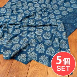 【5個セット】〔1m単位切り売り〕アジュラックプール村からやってきた 昔ながらのインディゴ木版染め更紗模様布〔幅約110cm〕 - ネイビー系