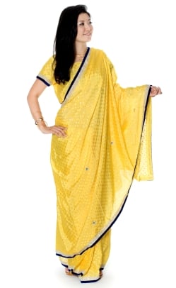 ビーズ刺繍のドット柄マハラニインドサリー【チョリ付き】 - 黄色