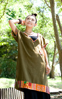 モン族のVネックワンピース 【カーキ】