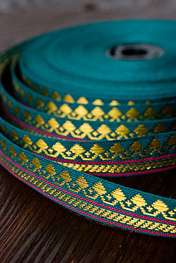 (幅:約1cm)細幅のチロリアンテープ(1m売り) - 青緑