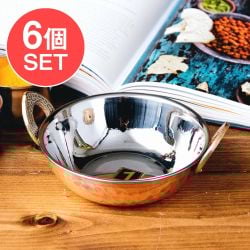【6個セット】槌目銅装飾仕上げのステンレスカダイ[装飾持ち手付]サービングパン 食器・お皿〔約14cm 約530ml〕