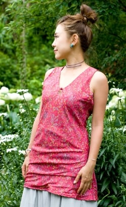 リバーシブル・オールドサリーチュニック 【ピンク・赤系】